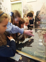 Да ещё экскурсия... Она состояла из двух частей. Познавательная: дети посмотрели, как жил маленький Саша Пушкин, когда приезжал к бабушке летом "на дачу". Развлекательная: ребятам рассказали и показали в какие игры играли в то время. Каждый ребёнок попробовал поиграть и почувствовать себя участником старинной игры.