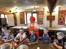 Утром, позавтракав на солнечной веранде и погуляв по улице Мира, изрисовав себе все руки рисунками хной, навестив собак хаски, дети прошли игру «Путь следопыта». А потом, набегавшись и затихнув той самой умиротворенной детской тишиной, надев смешные шапочки на головы, ребята делали хлеб. Потом хлеб пекся, а школьники обедали.